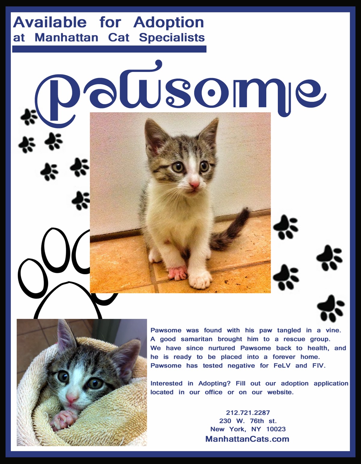 We also have 5 more kittens that will be available for adoption soon. All info will be posted on our website and on our Facebook page. The more you can help share info about our Manhattan Cat Specialists Adoption Program, the more lives we can save and find forever homes for these wonderful furry companions.